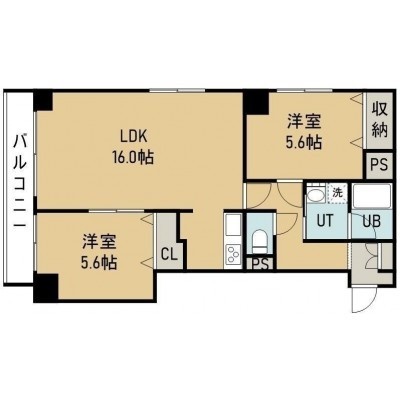 2LDK(61.16m²)└ 6階:LDK16帖 洋室5.6帖 洋室5.6帖