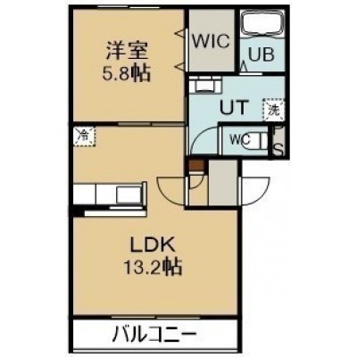 1LDK(44.32m²)└ 3階:LDK13.2帖 洋室5.8帖