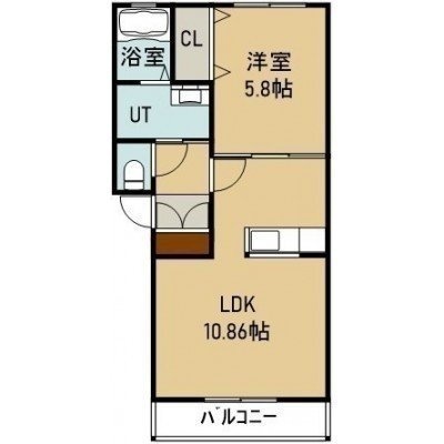 1LDK(38.83m²)└ 2階:LDK10.86帖 洋室5.8帖