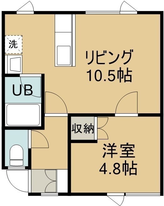 1LDK(32.64m²)└ 1階:LDK10.5帖 洋室4.8帖