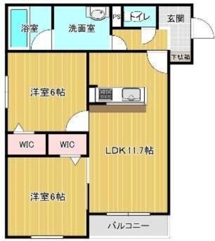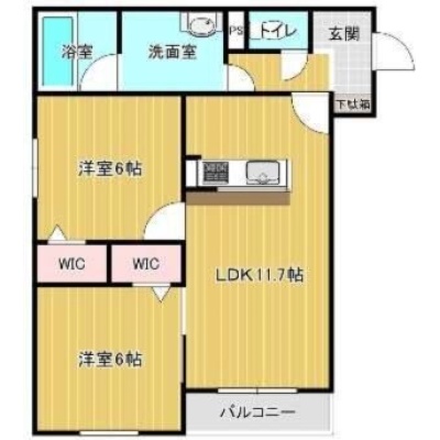 2LDK(56.23m²)└ 2階:LDK11.7帖 洋室6帖 洋室6帖