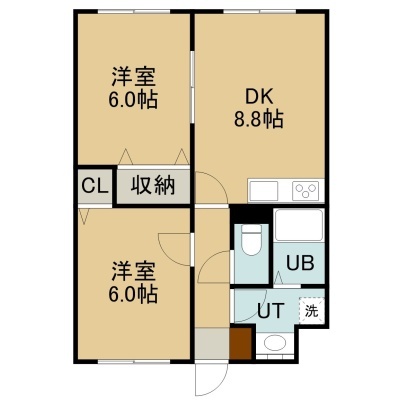 2DK(40.16m²)└ 3階:DK8.8帖 洋室6帖 洋室6帖