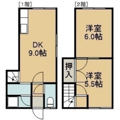 2DK(47.02m²)└ 1階:DK9帖 / 2階:洋室6帖 洋室5.5帖
