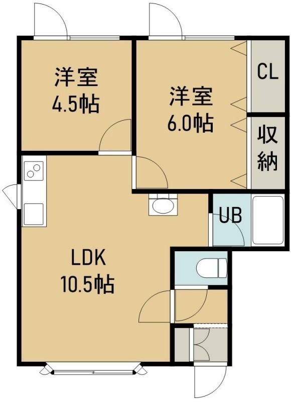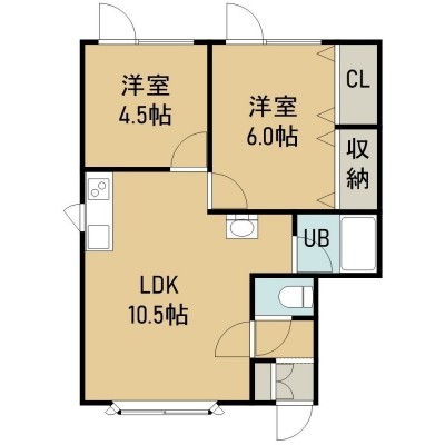 2LDK(49.59m²)└ 2階:LDK10.5帖 洋室6帖 洋室4.5帖