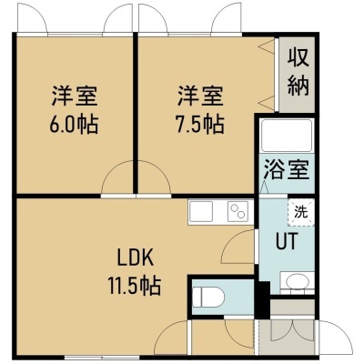 2LDK(52.9m²)└ 1階:LDK11.5帖 洋室7.5帖 洋室6帖