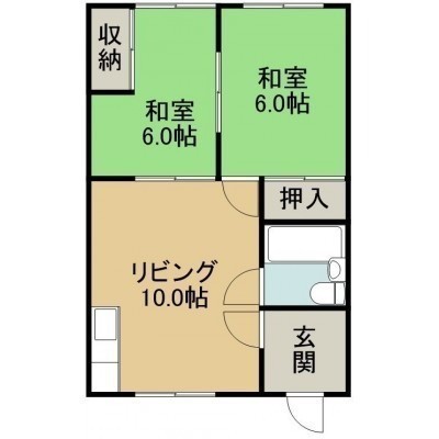 2DK(44.62m²)└ 2階:DK10帖 和室6帖 和室6帖