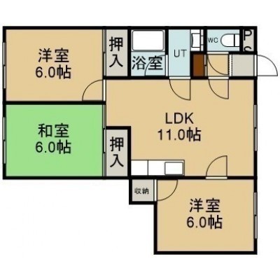 3LDK(59.91m²)└ 3階:LDK11帖 洋室6帖 洋室6帖 和室6帖