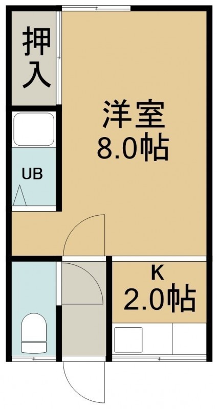1K(23.18m²)└ 2階:洋室8帖 K2帖