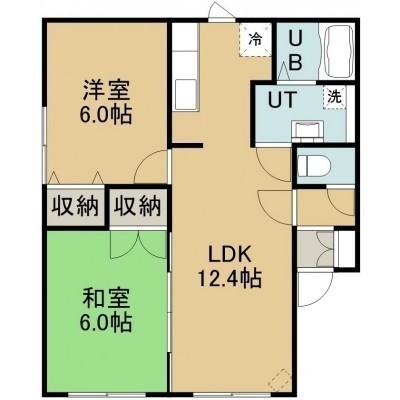 2LDK(47.6m²)└ 2階:LDK12.4帖 洋室6帖 和室6帖