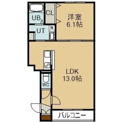 1LDK(42.85m²)└ 2階:LDK13帖 洋室6.1帖