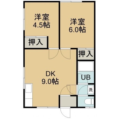 2DK(41m²)└ 2階:DK9帖 洋室6帖 洋室4.5帖