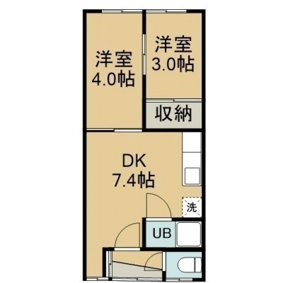 2DK(34.2m²)└ 2階:DK7.4帖 洋室4帖 洋室3帖