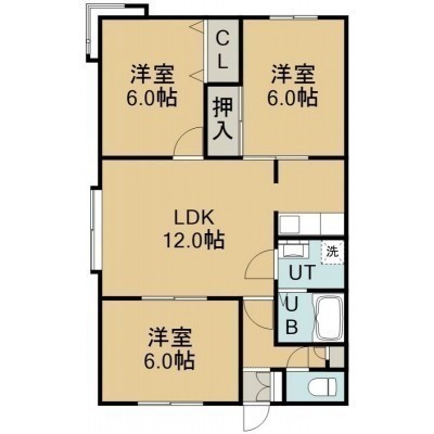 3LDK(61.05m²)└ 1階:LDK12帖 洋室6帖 洋室6帖 洋室6帖