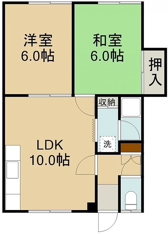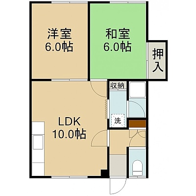 2LDK(44.5m²)└ 2階:LDK10帖 洋室6帖 和室6帖