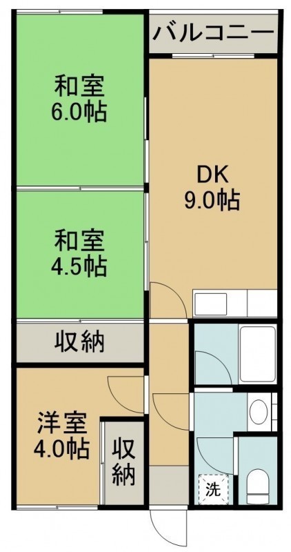 3DK(57.02m²)└ 7階:DK9帖 和室6帖 和室4.5帖 洋室4帖