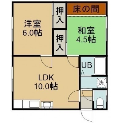 2LDK(46.37m²)└ 2階:LDK10帖 洋室6帖 和室4.5帖