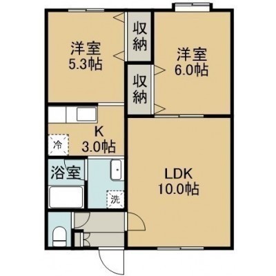 2LDK(59.21m²)└ 1階:LDK13帖 洋室6帖 洋室5.3帖