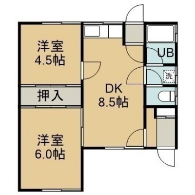 2DK(42.15m²)└ 1階:DK8.5帖 洋室6帖 洋室4.5帖