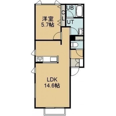 1LDK(45.9m²)└ 2階:LDK14.6帖 洋室5.7帖