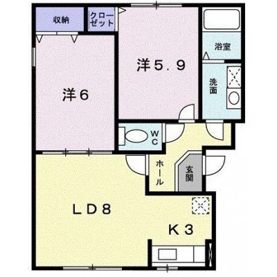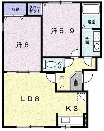 2LDK(51.45m²)└ 2階:LD8帖 K3帖 洋室6帖 洋室5.9帖