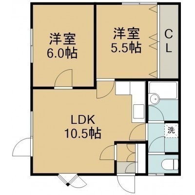2LDK(47.1m²)└ 2階:LDK10.5帖 洋室6帖 洋室5.5帖