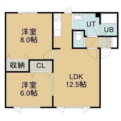 2LDK(58.74m²)└ 2階:LDK12.5帖 洋室8帖 洋室6帖