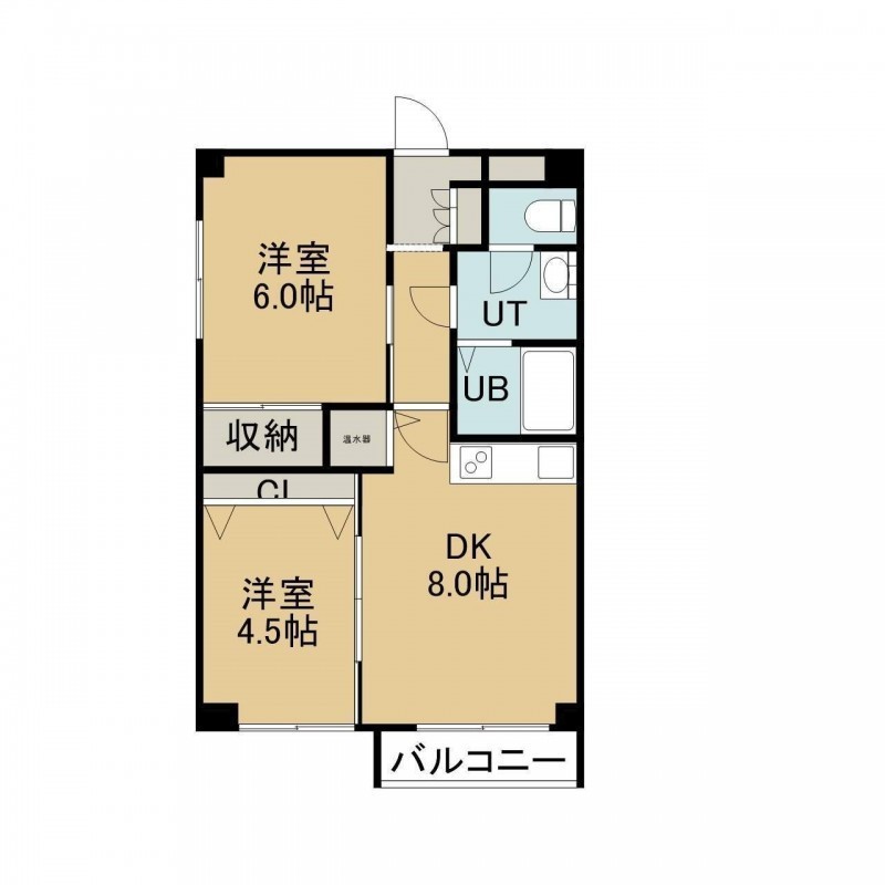 2DK(44.55m²)└ 4階:DK8帖 洋室6帖 洋室4.5帖
