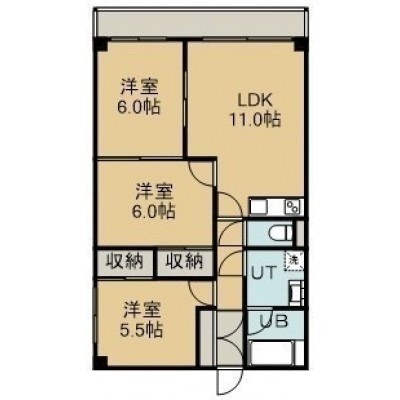 3LDK(58.62m²)└ 2階:LDK11帖 洋室6帖 洋室6帖 洋室5.5帖