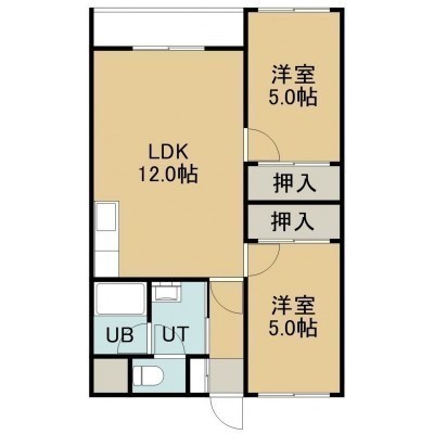 2LDK(44m²)└ 2階:LDK12帖 洋室5帖 洋室5帖