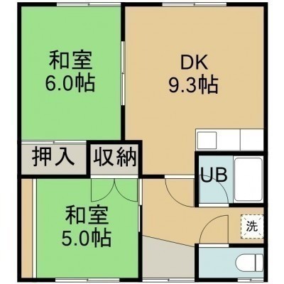 2DK(46.28m²)└ 1階:DK9.3帖 和室6帖 和室5帖