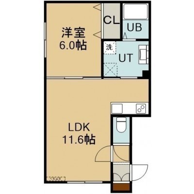 1LDK(44.87m²)└ 2階:LDK11.6帖 洋室6帖