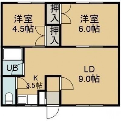 2LDK(47.54m²)└ 2階:LD9帖 K3.5帖 洋室6帖 洋室4.5帖