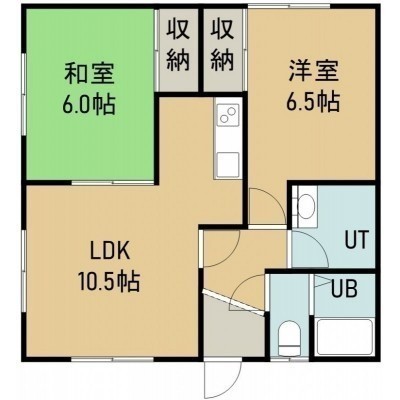 2LDK(49.41m²)└ 2階:LD10.5帖 洋室6.5帖 和室6帖 K3帖