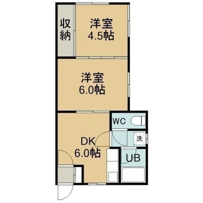 2DK(36.81m²)└ 1階:DK6帖 洋室6帖 洋室4.5帖