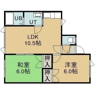 2LDK(46.98m²)└ 2階:LDK10.5帖 洋室6帖 和室6帖