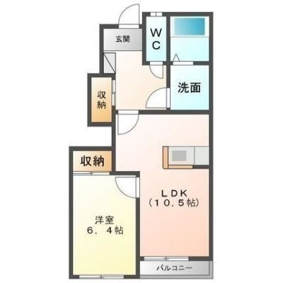 1LDK(44.62m²)└ 1階:LDK10.5帖 洋室6.4帖
