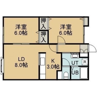 2LDK(53.24m²)└ 2階:LD8帖 K3帖 洋室6帖 洋室6帖
