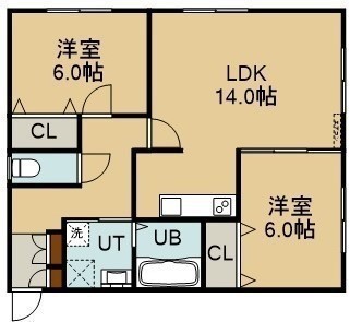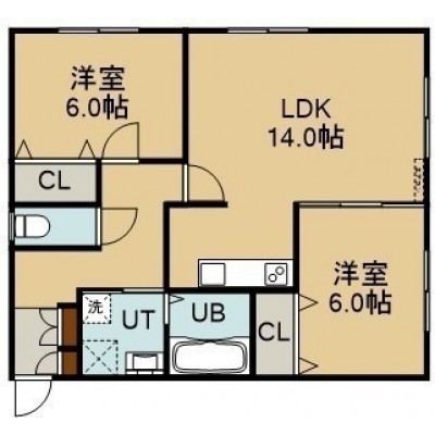 2LDK(62.9m²)└ 2階:LDK14帖 洋室6帖 洋室6帖