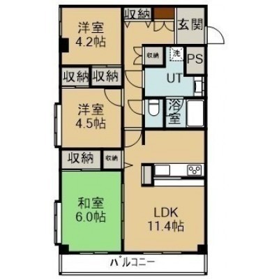 3LDK(68.46m²)└ 10階:LDK11.4帖 和室6帖 洋室4.5帖 洋室4.2帖