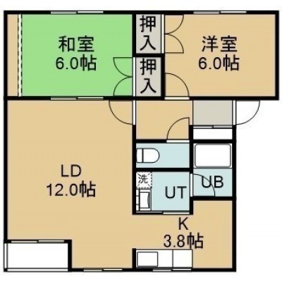 2LDK(59.48m²)└ 2階:LD12帖 K3.8帖 洋室6帖 和室6帖