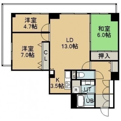 3LDK(81.43m²)└ 3階:LD13帖 K3.5帖 洋室7帖 洋室4.7帖 和室6帖