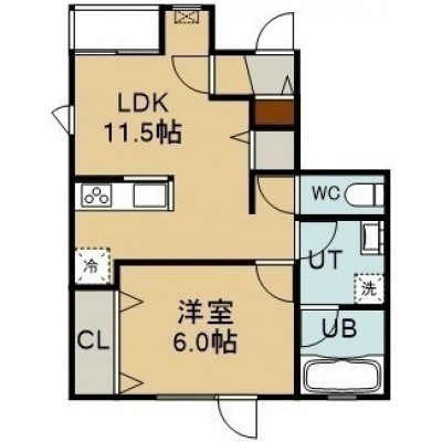 1LDK(45.44m²)└ 1階:LDK11.5帖 洋室6帖