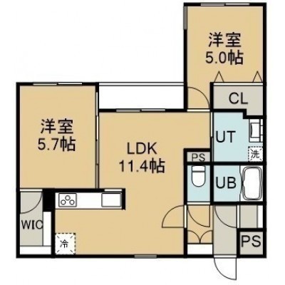 2LDK(53.19m²)└ 4階:LDK11.4帖 洋室5.7帖 洋室5帖