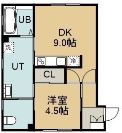 1DK(40.29m²)└ 1階:DK9帖 洋室4.5帖