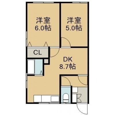 2DK(42.85m²)└ 2階:DK8.7帖 洋室6帖 洋室5帖