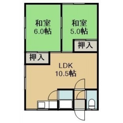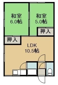 2LDK(43.74m²)└ 2階:LDK10.5帖 和室6帖 和室5帖