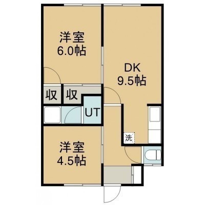 2DK(46.3m²)└ 2階:DK9.5帖 洋室6帖 洋室4.5帖
