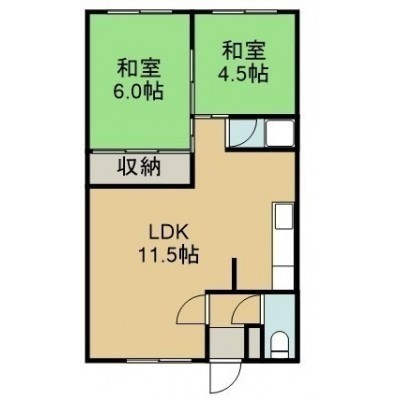 2LDK(43.8m²)└ 2階:LDK11.5帖 和室6帖 和室4.5帖