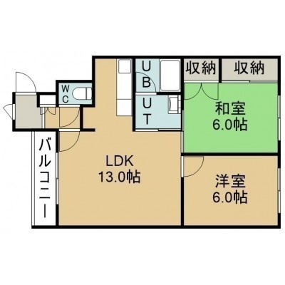 2LDK(57.45m²)└ 2階:LDK13帖 洋室6帖 和室6帖
