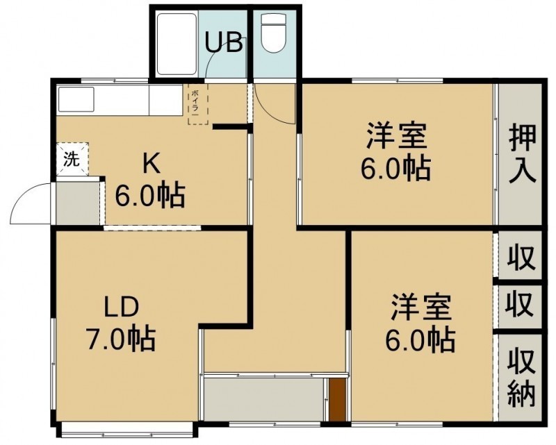 2LDK(64.39m²)└ 1階:LD7帖 K6帖 洋室6帖 洋室6帖